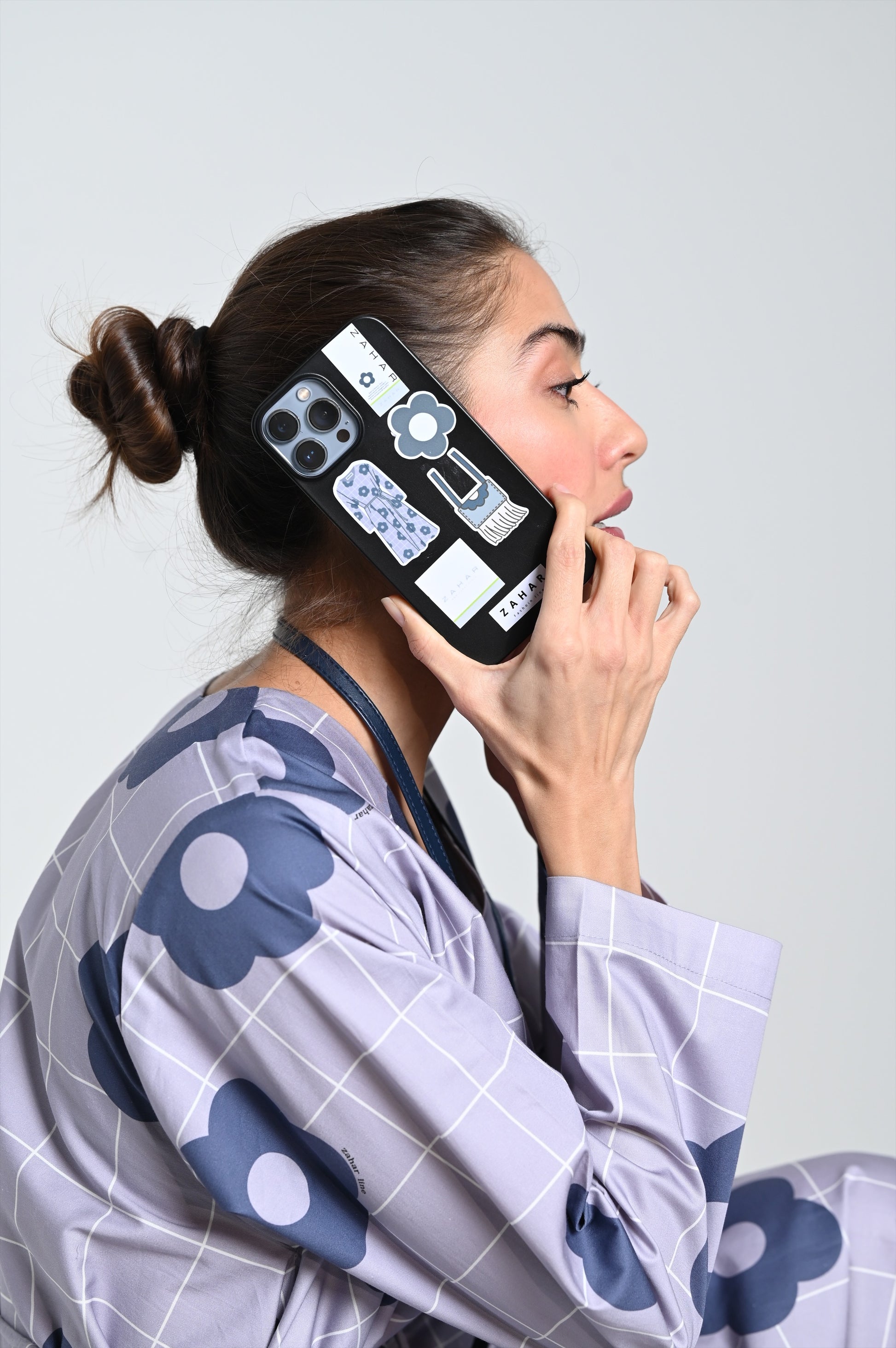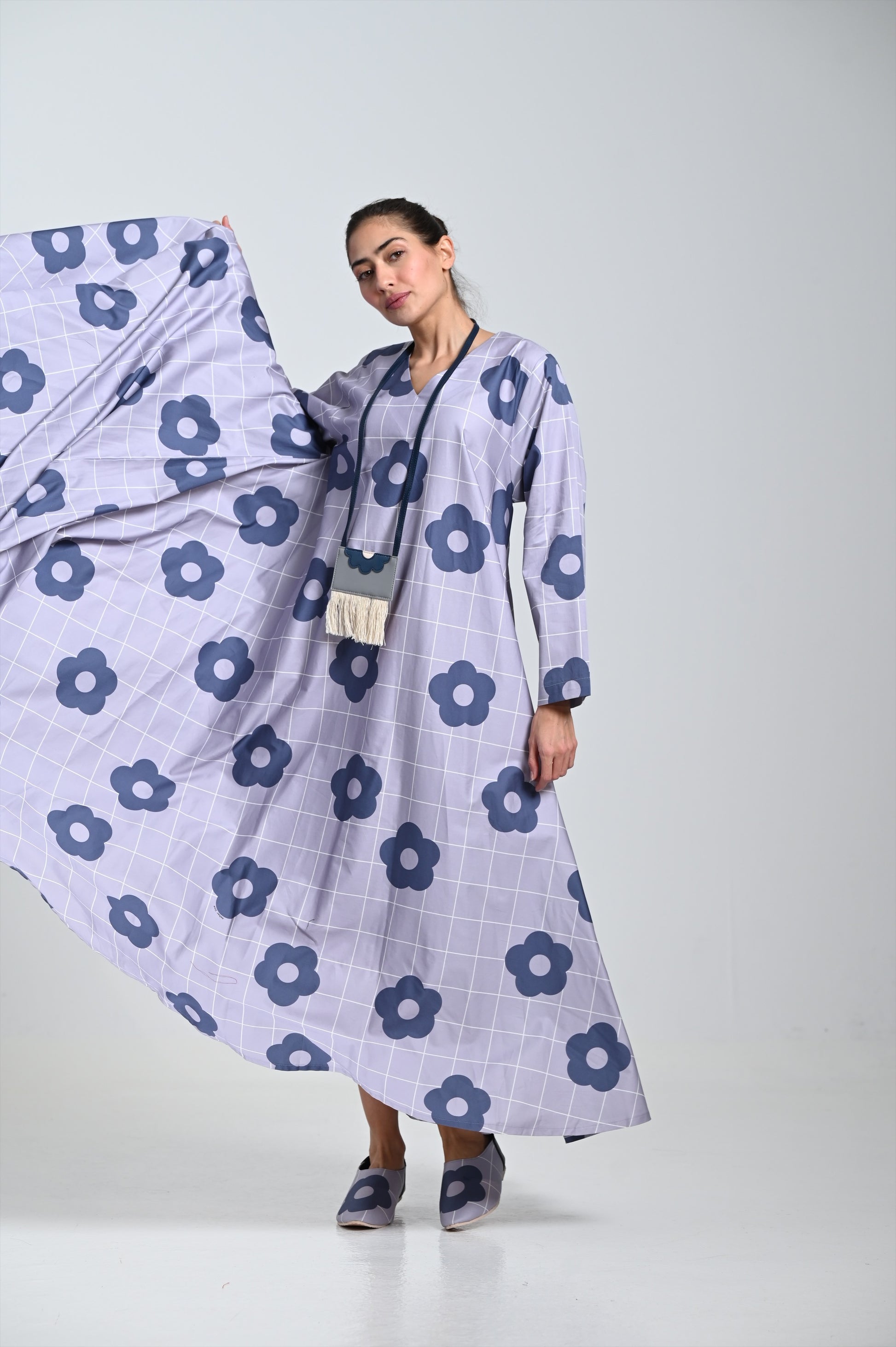 • النقشة: مربعات مع أزهار هندسية كبيرة