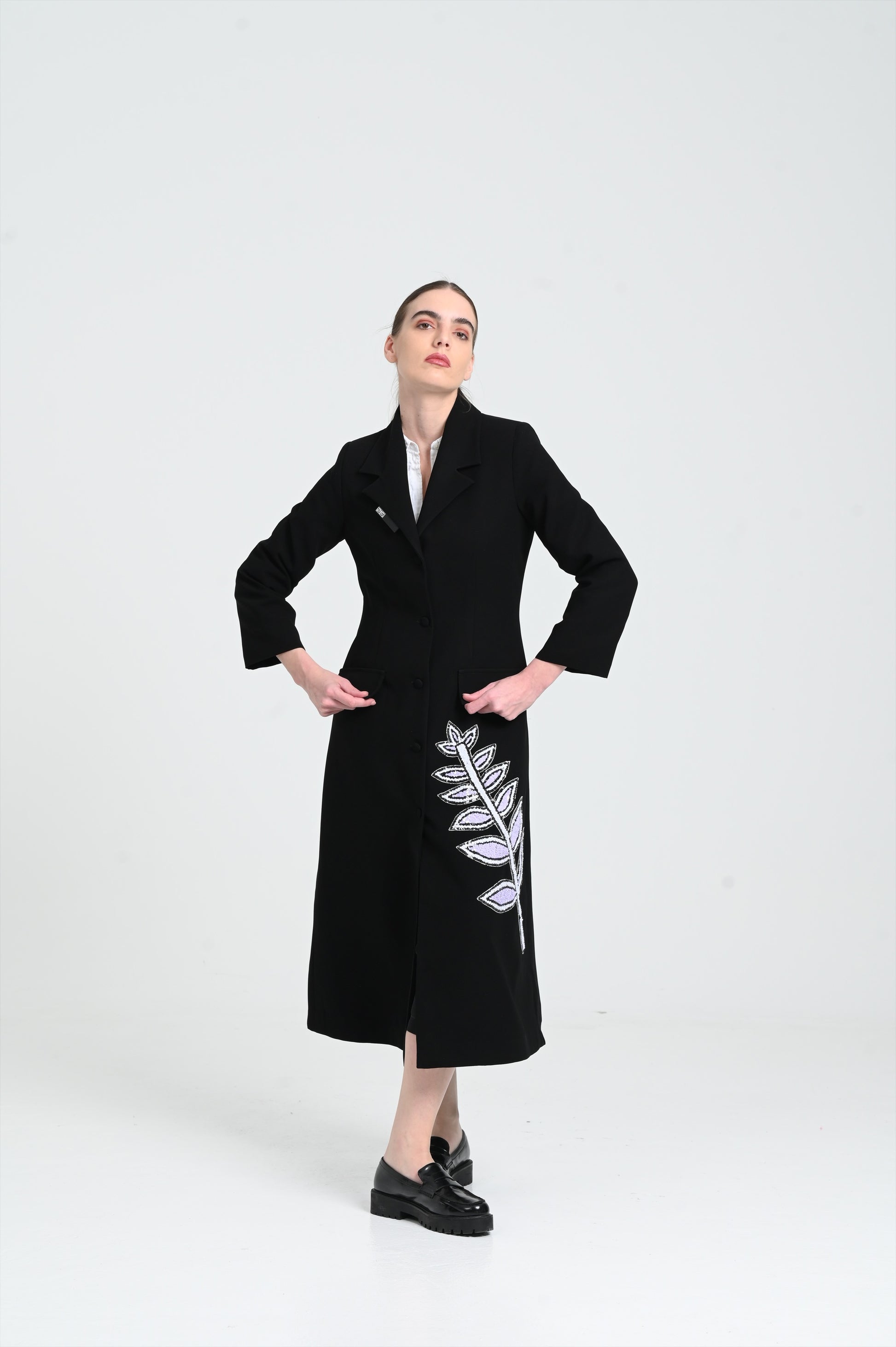 - الأكمام: طويلة بقصّة مستقيمة